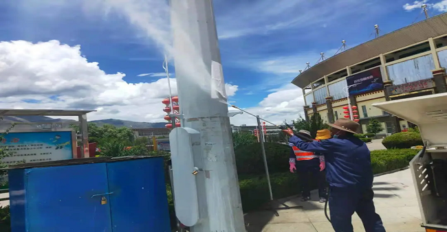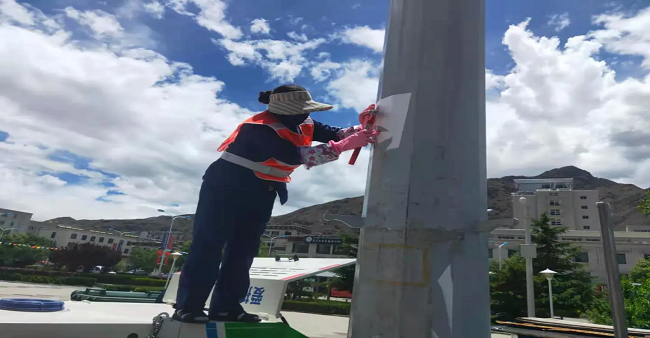 同時,山南分公司還調配了15名員工、1輛高壓沖洗車、1輛灑水車、1輛洗掃車、1輛多功能沖洗車組成了體育場臨時清洗隊,對體育場垃圾桶、電樁小廣告、周邊雜草以及地面等進行了集中清理,通過采取高壓水槍沖洗和人工擦拭相結合的方式,體育場周圍環(huán)境及設施煥然一新,顯露“本色”。