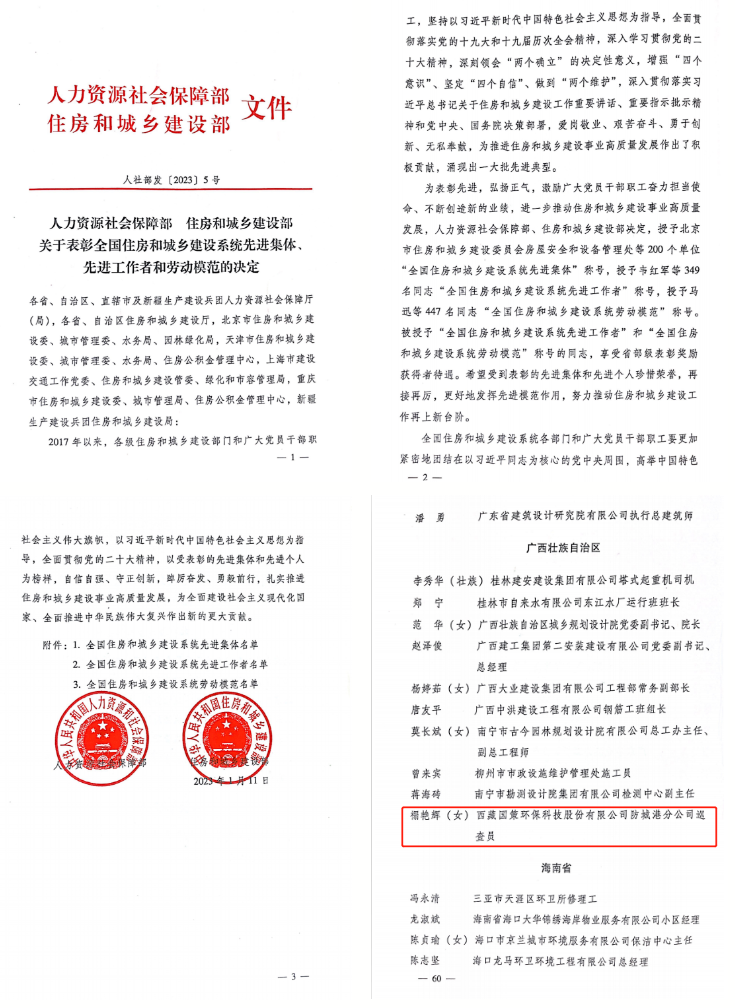 在數(shù)十年如一日的堅持中,換來了禤艷輝多次被評為防城港市“先進工作者”、港口區(qū)環(huán)衛(wèi)“先進工作者”、廣西最美市政園林工人、最美環(huán)衛(wèi)工人等榮譽稱號,加上此次“全國住房和城鄉(xiāng)建設(shè)系統(tǒng)勞動模范”稱號,“國策榜樣”這個稱號,她實至名歸!